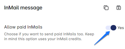 Here's where it gets interesting: salessky.io enables you to blend paid and free InMails in your Smart Sequence. Our algorithm makes a difference between Open Profile users and those who can only receive paid InMails. By toggling the "Allow paid InMails" button in the platform, you empower the Smart Sequence to make this decision for you, ensuring a smooth path to your lead through InMail.
