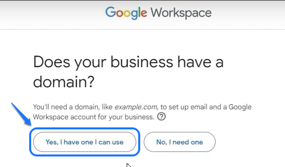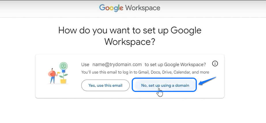 When we get to this screen, this is where we connect our new workspace with our alternate domain, so click on “No, set up using a domain.” Then, you’ll get to the screen below. 👇